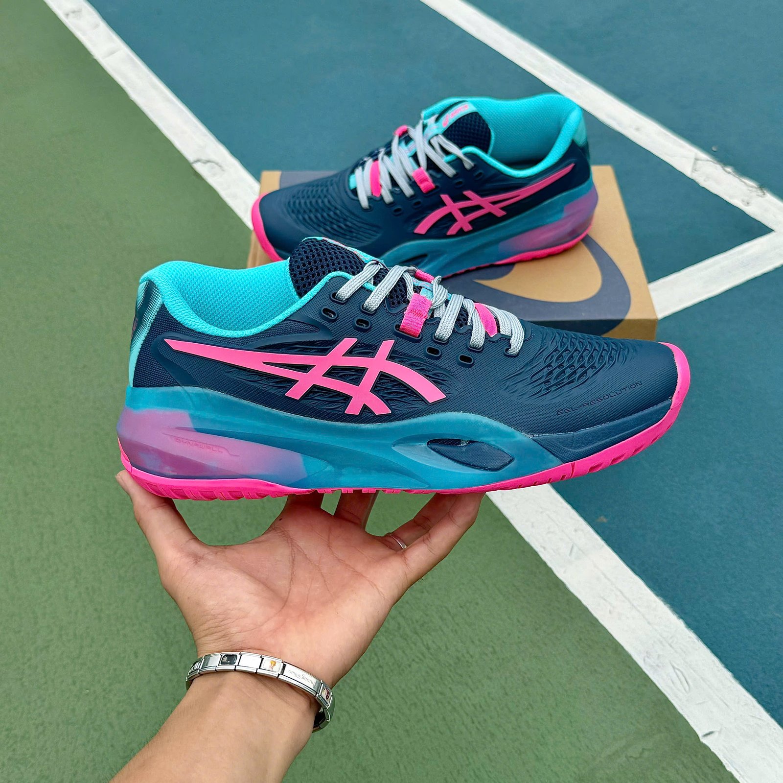 Giày Asics Gel-Resolution x Padel – Mako Blue Hot Pink 1041A